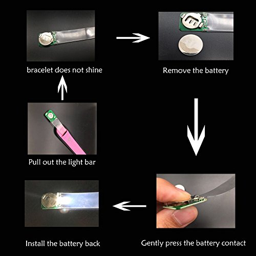 Patented Technology This model of Slap Armband has two patents, including the Utility model patent Design patent. The inventor of this item has years of experience in this line, our product's quality is outstanding, beating other sellers who buy from those factories who stole our designs. Whole Light-UP The LED light of the 360°whole Armband is shining, not just one spot, which can ensure safety when doing exercises or other activities at night, for exaple, wear it at your favorite singer's concert or campfire evening party and etc . Adjustable size Adjustable size makes the wearing of the item quite comfortable. You can buy the same item for your children, as the size is adjustable. Materials of led slap bracelet We are using the eco-friendly TPU light-guiding tube, which is covered by nylon fabric. Four Intelligent Modes There are three operation modes for the item, Always bright , Quick Flashing, Slow Flashing and Off. When the led is shing, it can be seen a long distance away Easy battery replacement Each Armband comes with 1*CR2032 3V small lithium button batteries which can work for about 50-70 hours. When the battery is exhausted, you can replace it with a new one. The replacement battery is available in our store. Disassemble and cleaning The LED light is disassemble, and the nylon armbands can be cleaned with water Packing Contents: 4 x 25cm LED Slap Bracelet (Orange, green, pink, blue)(Including batteries) Tips Button battery is consumable cannot participate in the warranty, The replacement is available in our store. Thank you for your understanding. 0
