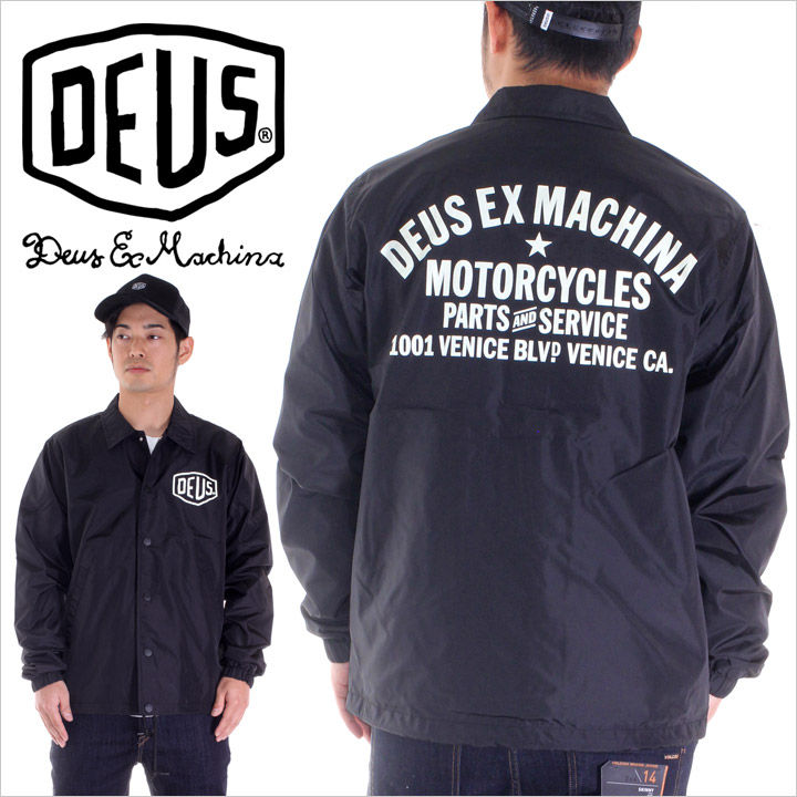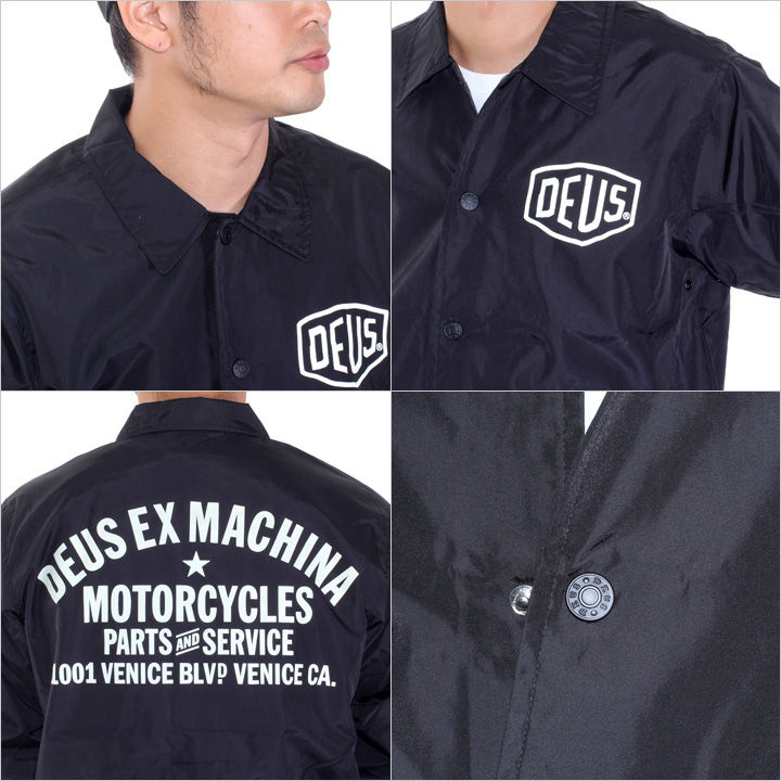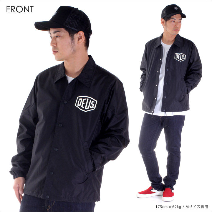フロントにDEUSシールド、バックにはDEUSグラフィックをプリントしたジャケットです。