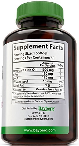 Overall Health Support: This dietary supplement by Bayberg is a great support for healthy joints, eyes, hair and skin. Balances immune & nervous systems. Also helps by forming neural transmitters, such as phosphatidylserine, which is important for brain functions such as memory, focus and cognitive performance. Fish Oil Polyunsaturated fatty acids (PUFAs) have anti-aging properties and It’s probably one of the most important dietary supplements to sustain a healthy lifestyle.