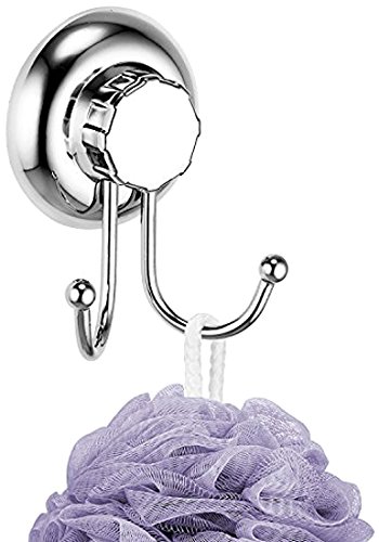 MaxHold Suction Cup Double Robe Hooks - Vaccum System - Stainless Steel Never Rust - for Bathroom and Kitchen Storage
