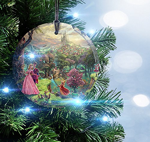 -. Feature : Image: Sleeping Beauty / Artist: Thomas Kinkade / 3.5"x3.5" Circle / Hanging Glass for display in windows. / Christmas Tree Ornament