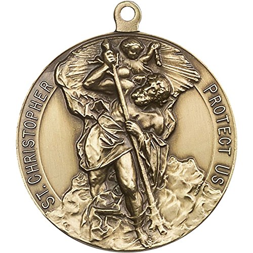 -. Title : Antique Gold-Plated St. Christopher Keychain 1 5/8 x 1 1/2 inches
