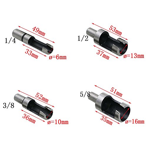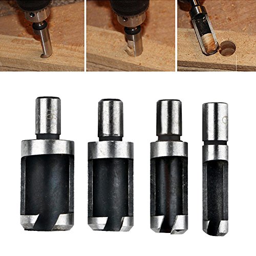 Wood Plug Cutter Drill Bit, Lily's Gift 4pcs 6MM-16MM Carbon HSS Wood Plug Hole Saw Tool Drill Bit Set Straight DIY
