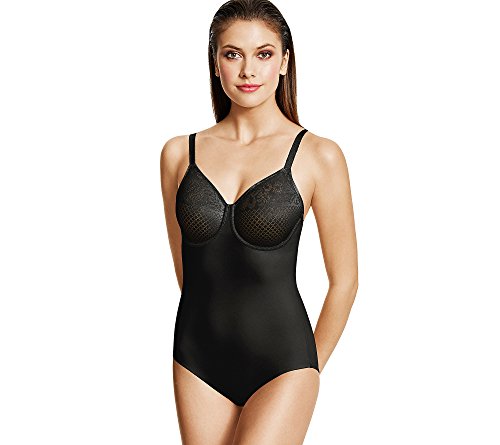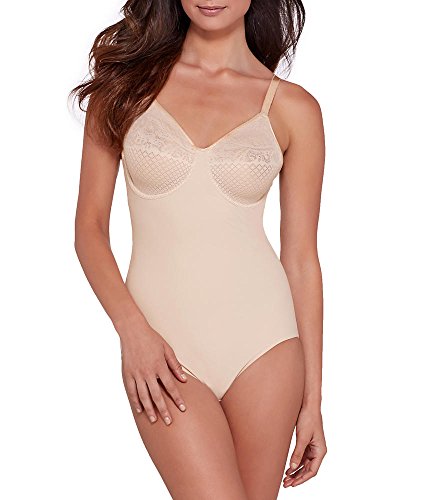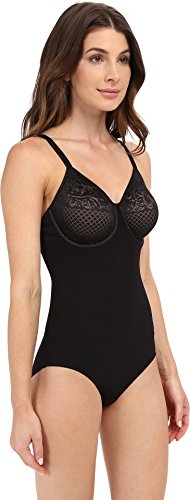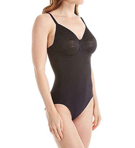 Product DescriptionStretch jacquard minimizer cups with mesh lining on this shaping bodysuit0