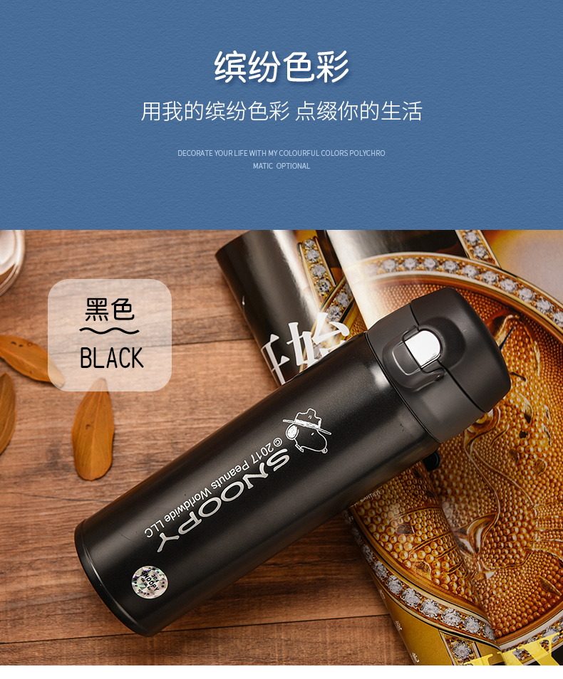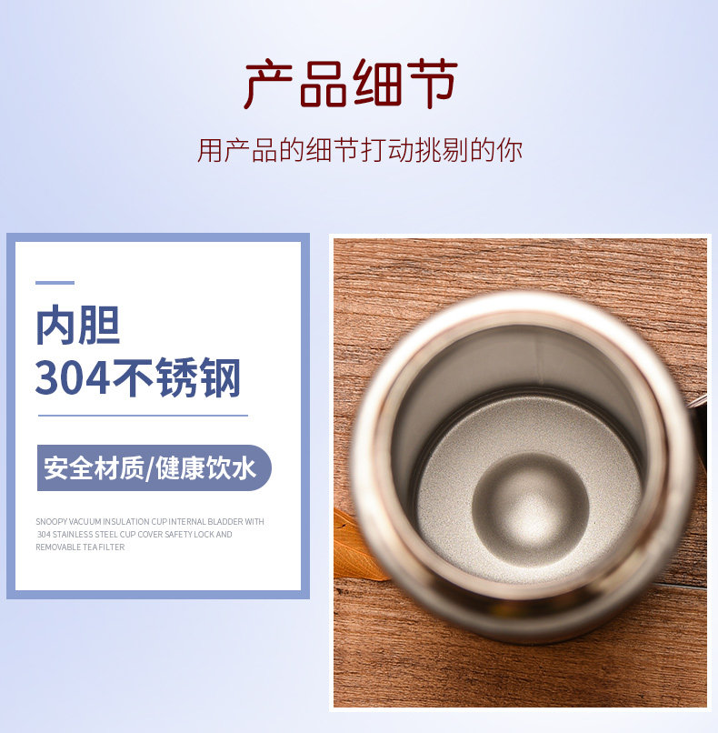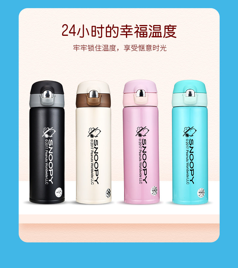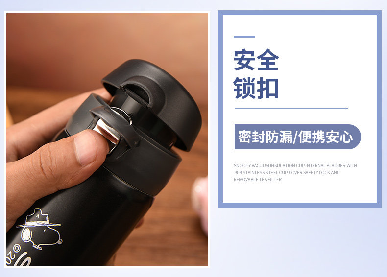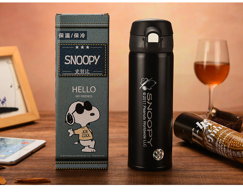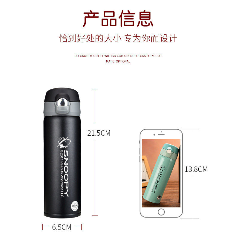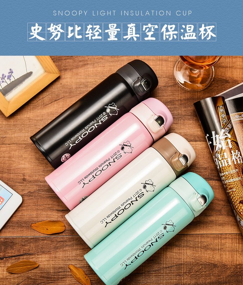 史努比真空保温杯304不锈钢男女办公水杯儿童保温壶学生水壶杯子