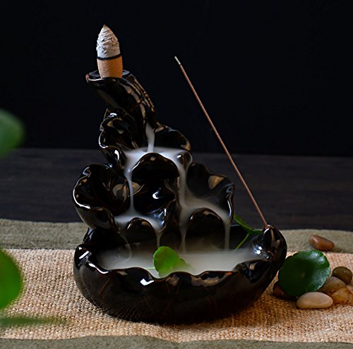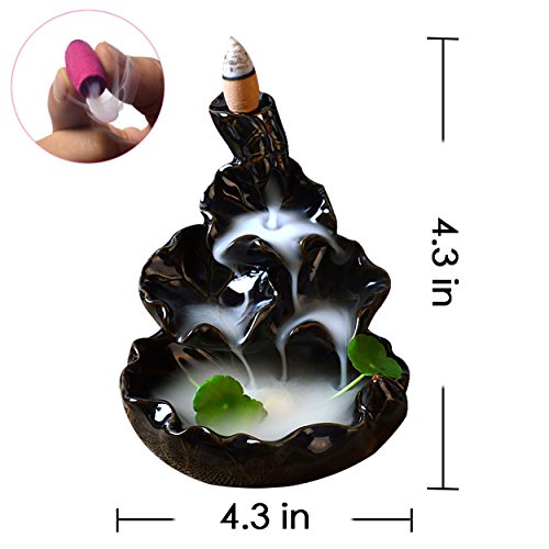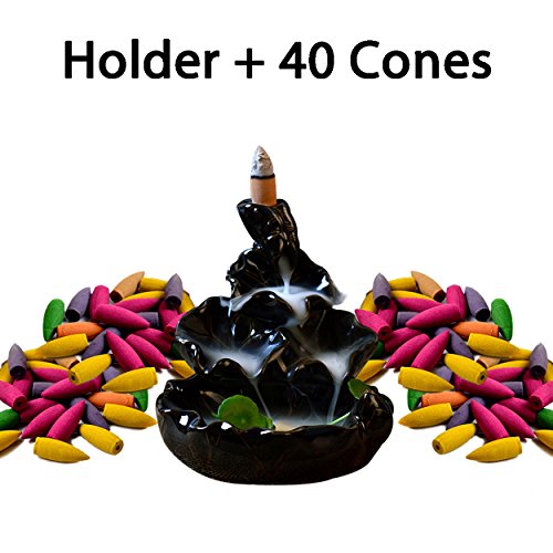 Ivenf Ceramic Censer, Backflow Variety Mixed Aromatherapy Incense Cones and Holder/Burner Set, Appox. 40 Cones(8 Kinds Assorted) & 1 Holder
