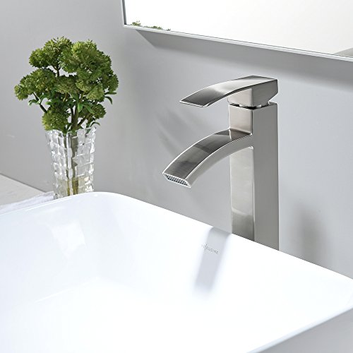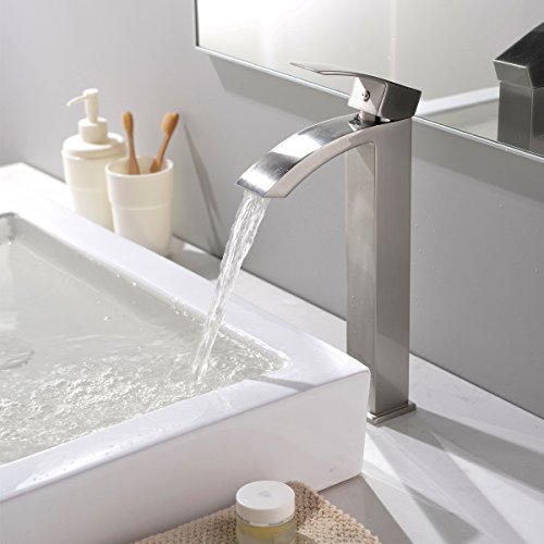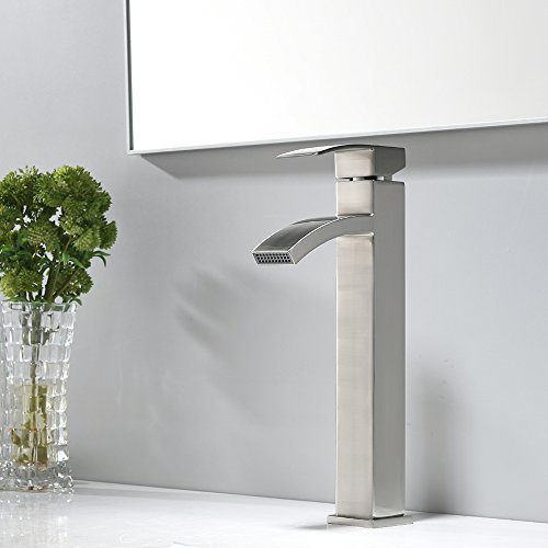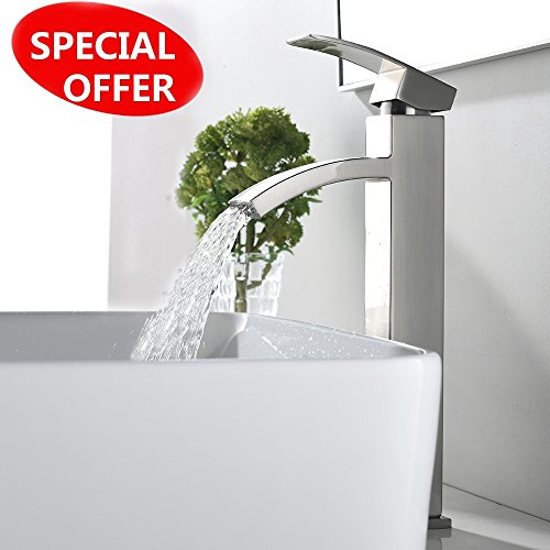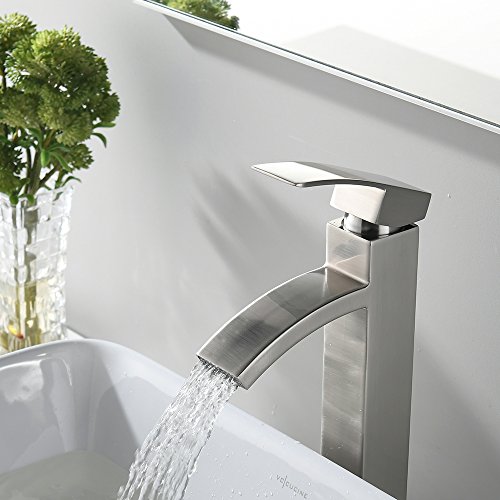 VCCUCINE Contemporary Modern Brushed Nickel Tall Single Handle Bathroom Vessel Sink Faucet, Laundry Stainless Steel Sink Faucet With Two 3/8" Hoses