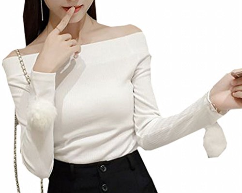 -. Title : Magno 肩出し オフショルダー リブ ニット カットソー Tシャツ レディース 長袖 トップス (11 ホワイト Fサイズ)