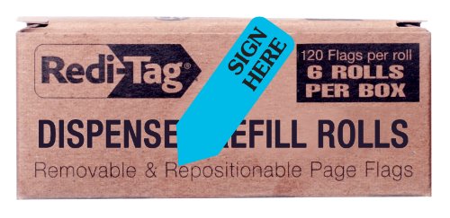 Redi-Tag Sign Here Printed Arrow Flags, 6 Roll Refill, 120 Flags per Roll, 1-7/8 x 9/16 Inches, Blue (91003)