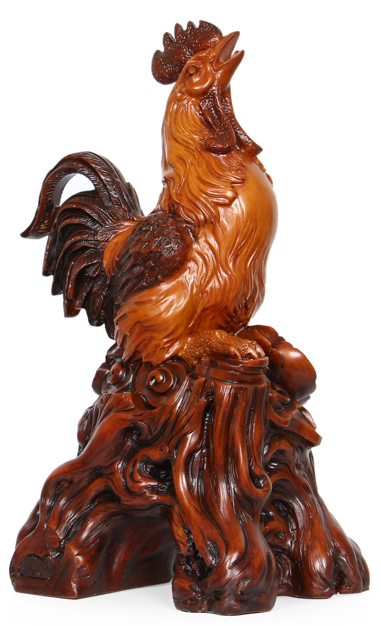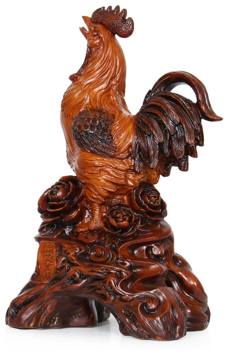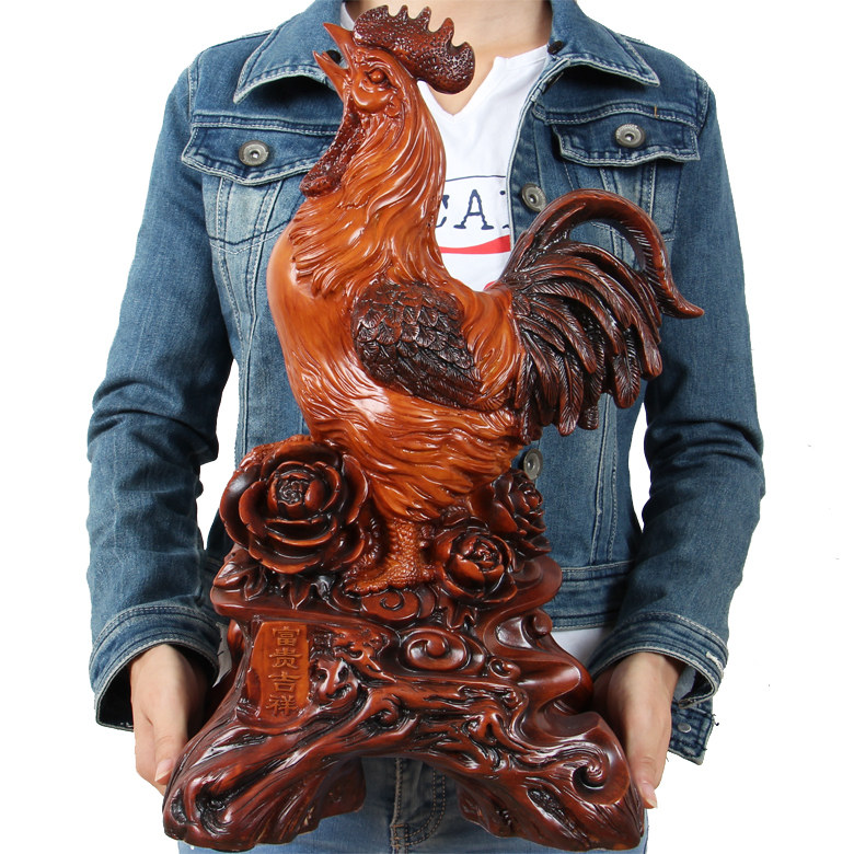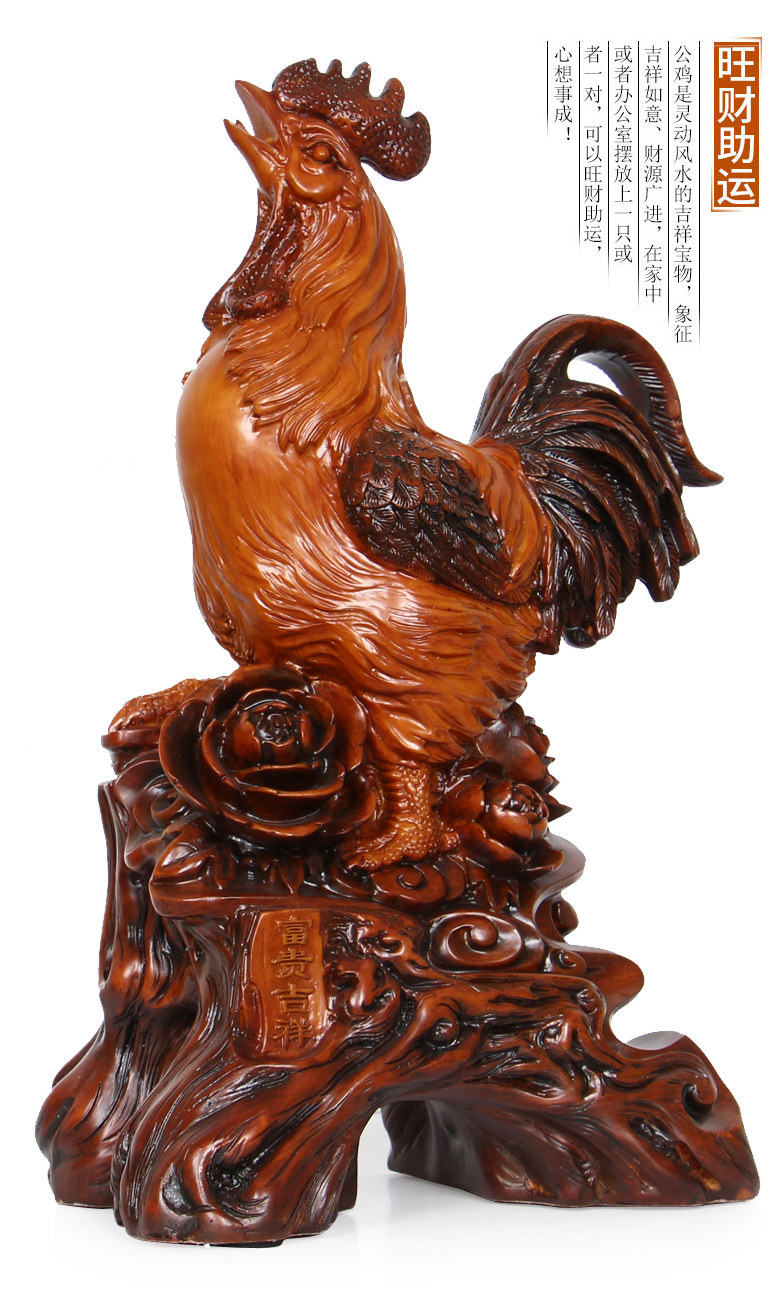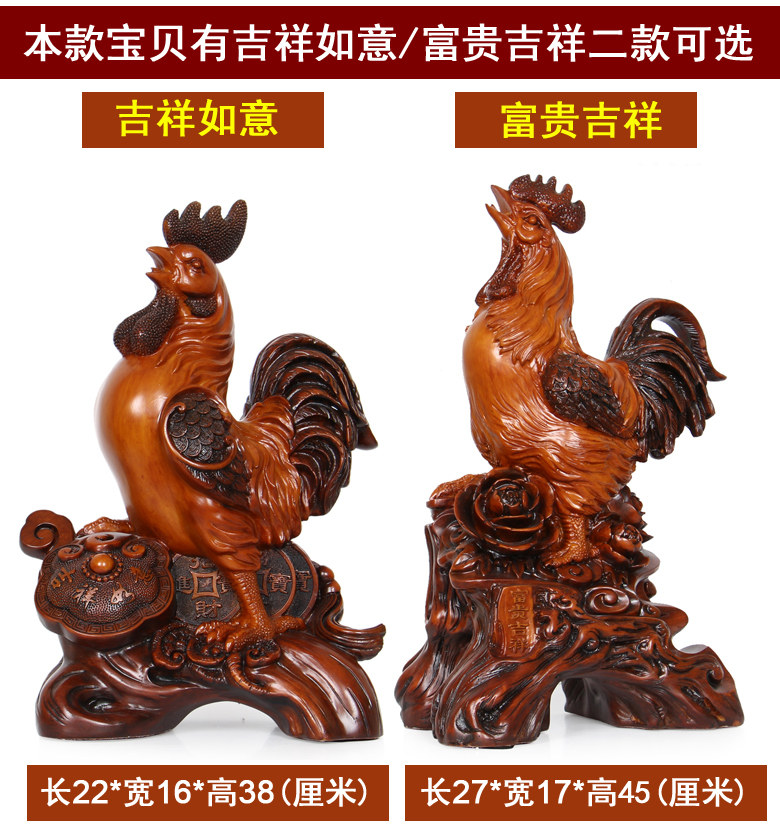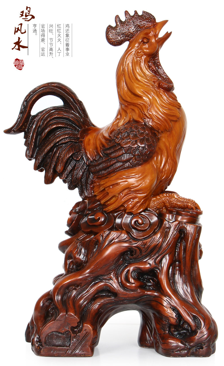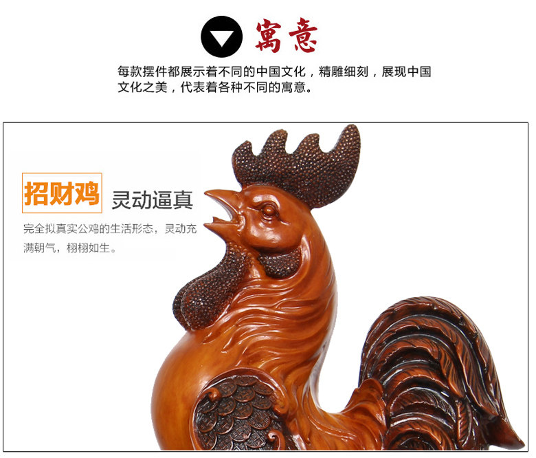 招财公鸡摆件十二生肖鸡工艺摆设 树脂仿木大号风水家居装饰品