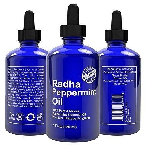 -. Binding : Health and Beauty -. Brand : Radha -. Color : Purple -. EAN : 0885920643694 -. Feature : This refurbished product is tested and certified to look and work like new. The refurbishing process includes functionality testing, basic cleaning, inspection, and repackaging. The product ships with all relevant accessories, and may arrive in a generic box -. IsAdultProduct : 0 -. IsAutographed : 0 -. Label : Radha -. Manufacturer : Radha -. Model : B00XJYYSI4RCM -. MPN : 1 -. PackageQuantity : 1 -. PartNumber : 1 -. ProductGroup : Health and Beauty -. ProductTypeName : HEALTH_PERSONAL_CARE -. Publisher : Radha -. Studio : Radha -. Title : Peppermint Essential Oil - Big 4 oz - 100% Pure & Natural Mentha Peperita Therapeutic Grade - Premium Quality Oil for fresh scent at home & to repel Mice & Spiders -. UPC : 885368816117