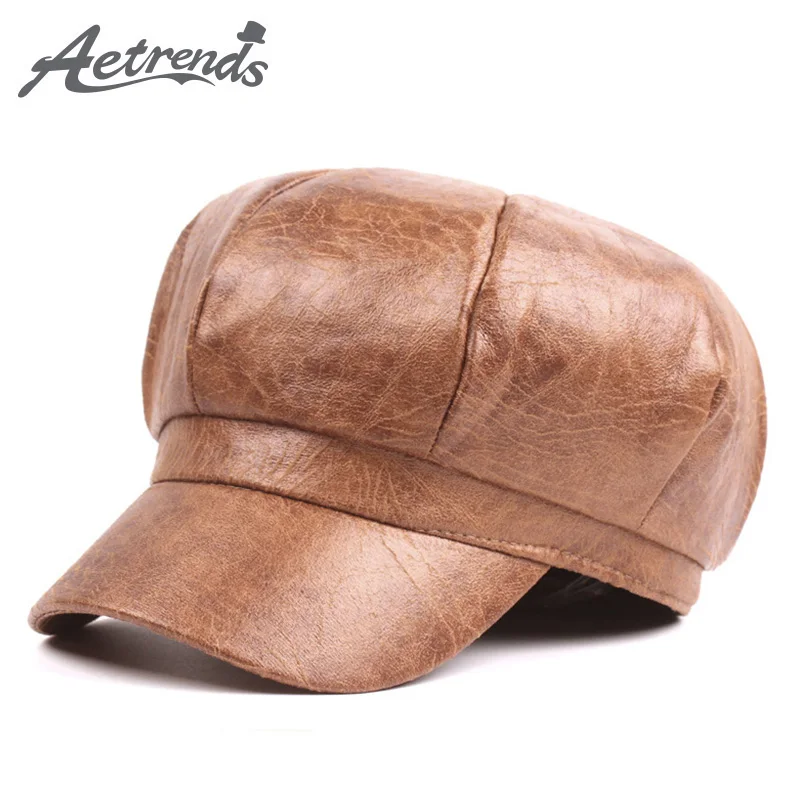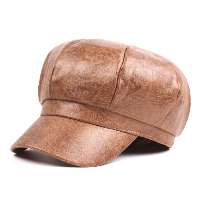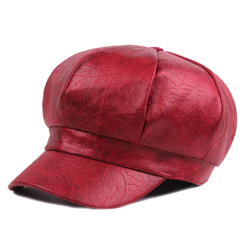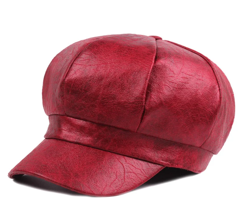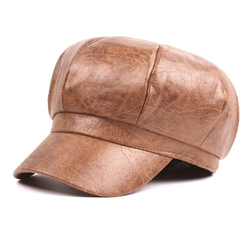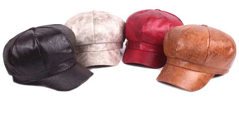 Name:2017 Autumn Winter Women PU Leather Newsboy Caps New Fashion