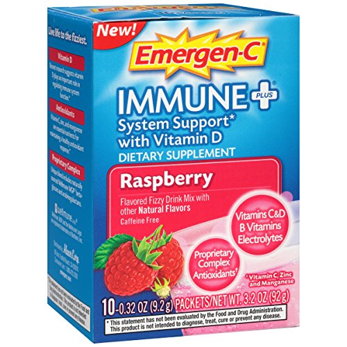 -. Binding : Health and Beauty -. Brand : Emergen-C -. EAN : 0885898000307 -. Feature : Includes one bottle with 45 Emergen-C Immune+ Vitamin Gummies in Raspberry flavor / Yummy, gummy vitamin form with Vitamin D plus 500 mg Vitamin C per serving / Gummy vitamin supplement is made with natural fruit flavors and sweeteners / Emergen-C gummies for adults are gluten-free and caffeine-free / Available in two delicious varieties: Super Orange and Raspberry -. Label : Emergen-C -. Manufacturer : Emergen-C -. PackageQuantity : 1 -. ProductGroup : Pantry -. ProductTypeName : HEALTH_PERSONAL_CARE -. Publisher : Emergen-C -. ReleaseDate : 2015-07-16 -. Studio : Emergen-C -. Title : Emergen-C Immune+ (10 Count, Raspberry Flavor) System Support Dietary Supplement Drink Mix With Vitamin D, 1000mg Vitamin C, 0.32 Ounce Packets -. UPC : 885898000307