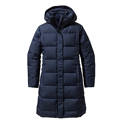The Patagonia Women's Down With It Parka digs warm times in cold cities. Traceable Down gives the jacket a toasty feel with lightweight loft, and you can trace the jacket's down back to birds that were never force-fed or live-plucked. Another eco-conscious feature is the recycled polyester shell, and Patagonia treated the shell with DWR for snow-shedding resistance against water. The Down With It also features a removable hood for brisk but sunny weather.Feature