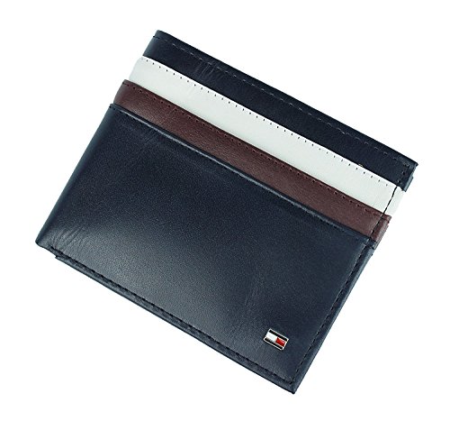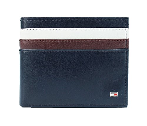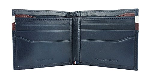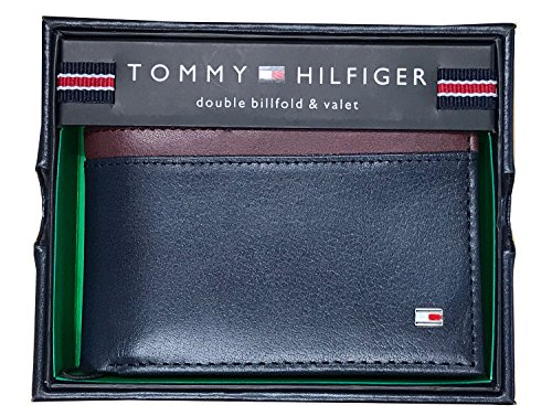 New Tommy Hilfiger Men's Leather Double Billfold Passcase Wallet & Valet (Navy)