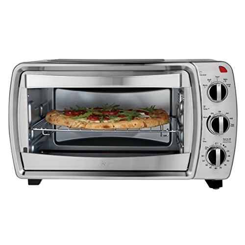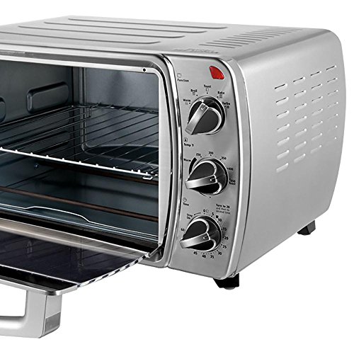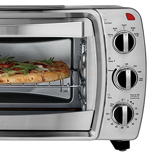 Studio : Oster Publisher : Oster Binding : Misc. Product Description If food makes you happy and you like making food quickly and easily, you need this Oster 6-Slice Convection Countertop Oven in the heart of your home. With so many cooking options in one small countertop oven, you will always look forward to whipping up something delicious. This oven has a temperature range from 150 degrees to 450 degrees, bake, broil, toast, and warm options, and 2 rack positions. The beautiful, brushed stainless steel finish complements your counter and decor on the outside and it provides you incredibly fast, more even convection cooking on the inside with turbo heat technology. It has a 60-minute timer with auto shut-off, easy-to-use dial controls, an enamel baking pan and broil rack, and a removable crumb tray. Craft your meals with convenience and versatility, because when your tummy is grumblin', this Oster is ready to cook for you. 0