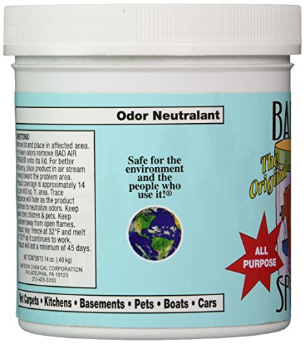 Eliminate odors from pets, urine, mildew, and many other odors safely with The Bad Air Sponge. The Bad Air Sponge does not mask odors with powerful scents or perfumes; it totally eliminates odor. When placed near an odor producer, it neutralizes the odors in the air as well as drawing out the odor causing molecules and neutralizing them. The Bad Air Sponge is the only air freshener you need. It can be used to remove any unpleasant odor from your home, office, boat, camper or anywhere where odors exist. It does not need to directly come in contact with any odor sources to eliminate them; just place it near the odor and it will eliminate the it. The Bad Air Sponge is used by professionals and home owners for the last 50 plus years and has become the standard odor remover for the entire disaster restoration industry. The Bad Air Sponge is frequently used to eliminate very potent odors including those due to mold, mildew, sewer gas, cleaning solvents, latex and oil paint fumes, formaldehyde, ammonia, and even human decay. The Bad Air Sponge works by neutralizing odor molecules in the air as well as pulling out and neutralizing odors from porous materials and objects including furniture, carpets, drapes, walls, and upholstery. This process makes it the best air freshener on the market today. The Bad Air Sponge is non-toxic, natural, and safe. It is safe to use as an odor removal product around your family, your pets, and your children. It is non-toxic and non-flammable.Feature