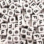 White Plastic Cube Alphabet Beads, Small, 6mm, Letter F, 100 pcs