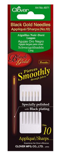 Clover No.10 Needles Applique/Sharps, Black/Gold