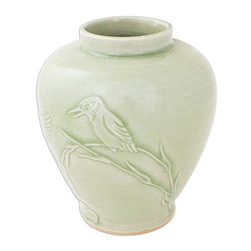 NOVICA Animal Themed Ceramic Vase, Green, 'Hummingbird Idyll'