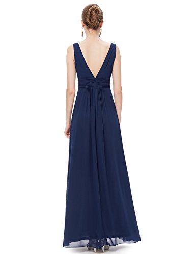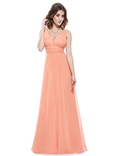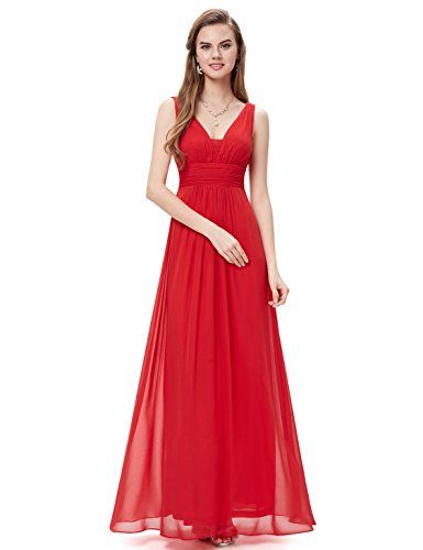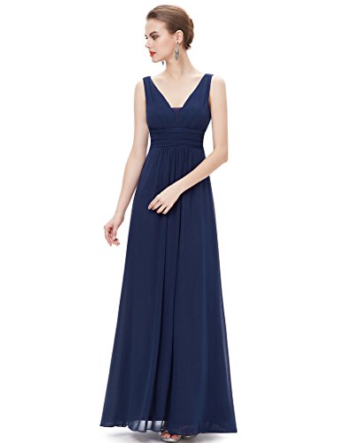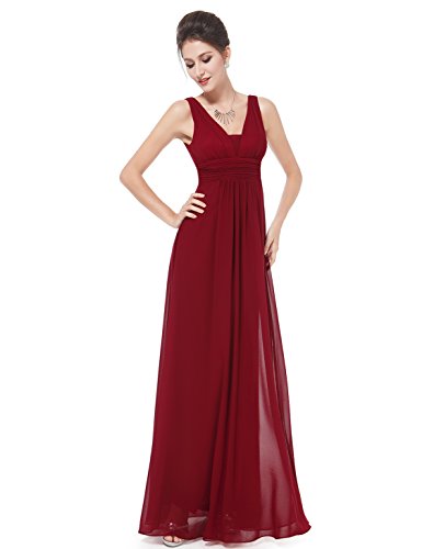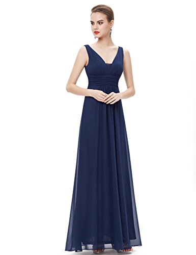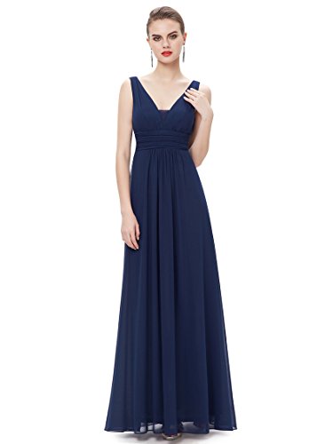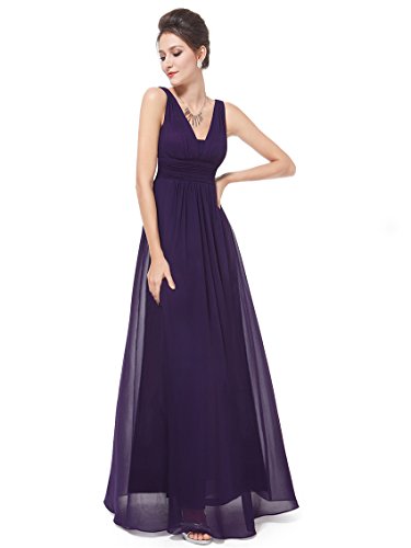 Double v-neck long evening dress. Padded enough for "no bra" option. Elegant ruched waist design creates a universally flattering silhouette. Simple, versatile design makes this dress appropriate for nearly any occasion. Concealed zipper up the back. Lining, no stretchFeature