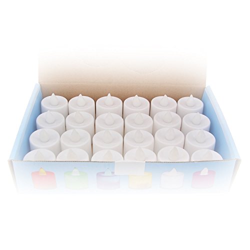 - A generous package of 24 candles with batteries included and installed, ready to use and easy to turn on or off with a sliding switch. Standard size tea light candles fit into any votives, tea light holders, and luminary bags