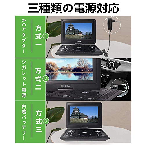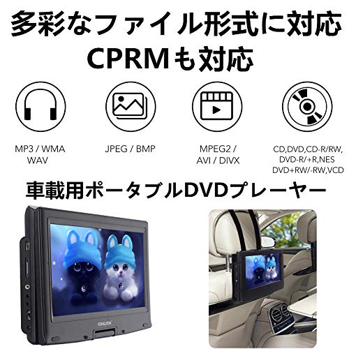 【ラストメモリー機能搭載 (レジューム機能)】 前回のDVD停止位置から続き再生できます。早送りやスキップの操作をする必要がありません。 | 【長距離ドライブに快適】 長距離ドライブ渋滞でも、お子様も退屈せずにDVDを流し車内の空間が快適に楽しめます。子供、女性、高齢者でも簡単に使えます。(ご注意:車載用ホルダーは別売りです) | 【パッケージ内容】 1x本体 1xリモコン 1xAVケーブル 1xACアダプター 1xシガーソケットアダプター 1x日本語取扱説明書 |