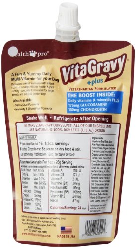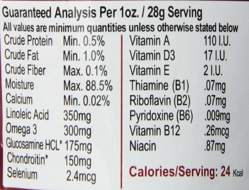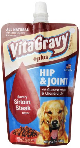 -. Feature : Mouthwatering sauce for dog food; perfect for finicky eaters. / Hip & Joint formula, contains 175mg Glucosamine & 150mg Chondroitin per 1/2oz Serving / Vitamin & Mineral fortified for overall health / All Natural, No Preservatives, Low Fat / Made in USA