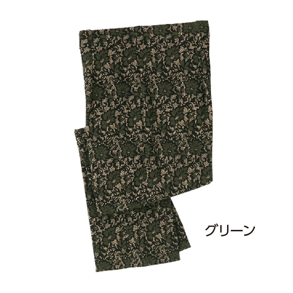 ストレッチのきいたおしゃれな花柄。全体がゆったりとしたシルエットです。 生産国:日本 素材・材質:ナイロン88%ポリウレタン12% 仕様:手洗い可 ※サプライヤー直送品 ご注文後5~6営業日後の出荷となります【商品名】カット花柄ゆったりチュニックパンツ グリーン M 8950701