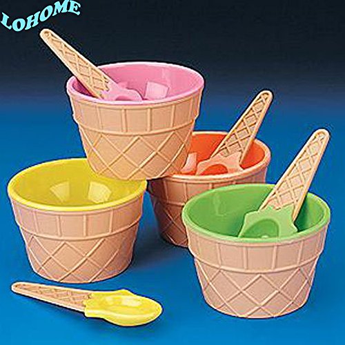 -. Title : LOHOME(TM) Plastic Ice Cream Dishes Bowls and Spoons, 4 Count