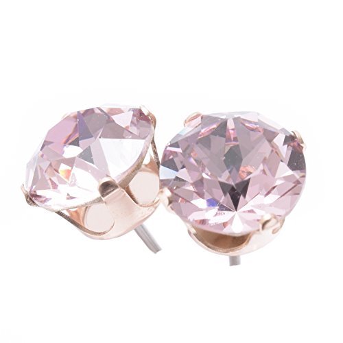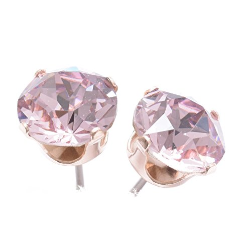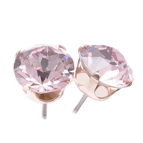 Pewterhooter 9mm Rose Gold Ohrstecker fachmannisch Made mit Licht Amethyst Kristall von Swarovski.