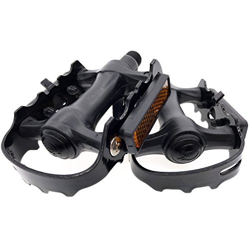 Bicycle pedals More Non-slip Pedals: Aluminum anti-skid teeth design is able to attach clips, you won't slipped off pedals due to excellent grip,Smoothly spinning steel ball axis increases pedaling rate, which reduces effort when having to pump up a hill and offers excellent riding experience.