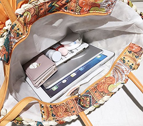 TOKYO-T Straw Purses Handbags for Women Flower Zipper Large Beach Tote Mesh