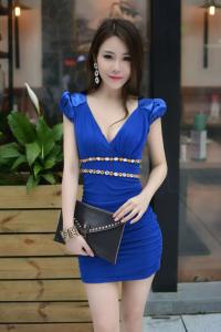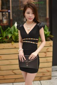 ナイトドレス ウエストビジュー ハイウエスト 袖フリル ミニ丈タイト プチプラ セクシー キラキラ 深Vネック