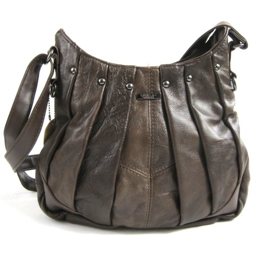 Real Leather Shoulder Bag with Pleated Design and Long Adjustable Strap