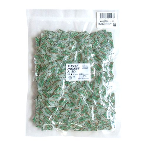 -. Feature : 酸素吸収量:50ml サイズ40mm×40mm 数量:1袋(200個) / エージレスSタイプは、エージレス自体が水分をもっており、空気に触れると同時に酸素を吸収しはじめます。傷みの早い食品に適しており、耐水性・耐油性に優れます。また、冷蔵にも使用できます。 / 人形焼、生めん、生パン粉、ピザクラスト、蒸まんじゅう、パン、荒削節、羊かん、ドラ焼、カステラ、焼まんじゅう、半生めん、生干し・魚開き、スイスロール、サラミ、甘納豆、とろろこんぶ、バウムクーヘン、味噌、 / 生わかめ、佃煮、干肉・珍味、米・雑穀、煮干し・魚粉・削節などにご使用可能です。