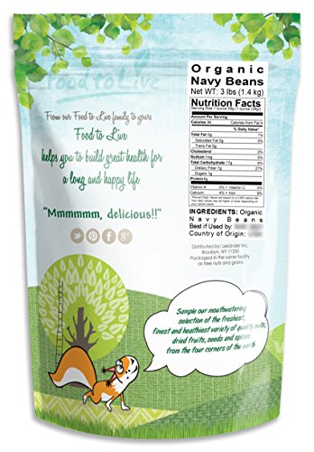 Food to Live Certified Organic Navy Beans (Dry White Small Kidney Pea Beans, Non-GMO, Bulk) (3 Pounds)
