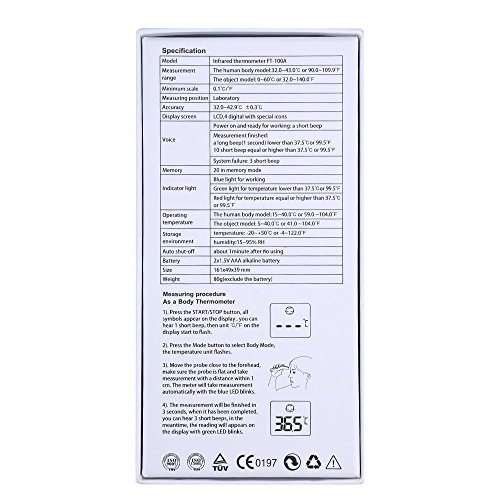 NON-CONTACT MEASUREMENT IN ONE SECOND - High-tech innovative infrared sensor: to complete measurement safely and healthily in one second. Auto shut-off when no using for about 1 minute