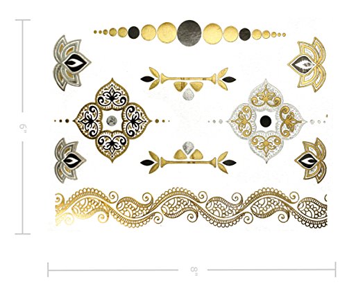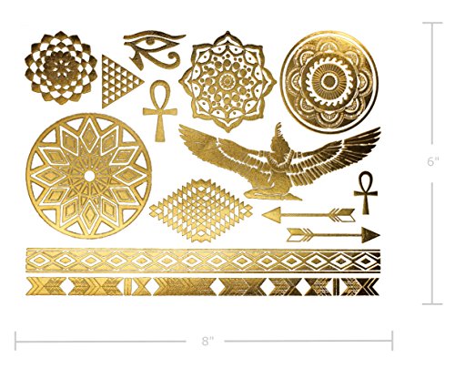 Terra Tattoos Metallic Temporary Tattoos - Over 50 Egyptian Tribal Designs in Gold, Silver, and Black (6 Sheets), Azalea Collection