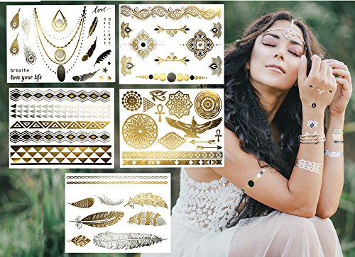 PREMIUM QUALITY - Our metallic temporary tattoos will last several days and keep its flash & glitter look. Not to mention, they’re waterproof