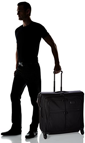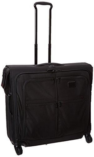 -. Binding : Apparel -. Brand : Tumi -. ClothingSize : One Size -. Department : unisex-adult -. Feature : Large front zip-opening compartment, Two front U-zip pockets, Additional zip pockets, X-Brace telescoping handle system, Four recessed wheels, Top and side grab handles, Add-a-Bag strap / Curtain with zip pockets, Removable zip pouches, Zip pocket, Shoe pocket, Open pocket, Hanger bracket, Tie-down straps / 24 x 25.5 x 13 -. Label : Tumi -. Manufacturer : Tumi -. PackageQuantity : 1 -. ProductGroup : Apparel -. ProductTypeName : LUGGAGE -. Publisher : Tumi -. Size : One Size -. Studio : Tumi -. Title : Tumi Alpha 2 4 Wheeled Extended Trip Garment Bag Updated with a new four-wheel design for effortless maneuverability, this longer, full-feature garment bag makes traveling with suits, coats and dresses effortless. Pack up to two hanging garments plus folded clothes and accessories and wheel it to wherever you are going. There is a large exterior compartment for additional clothing, two front U-zip pockets for last-minute items, shoes or a travel kit. Includes removable zip pouches. Features top carry handle, telescoping handle and hanging strap.