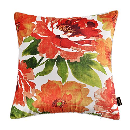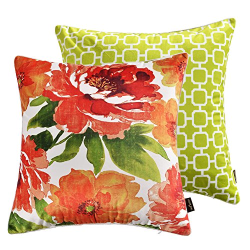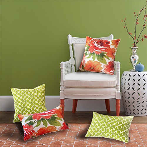 nioBomo Super Soft Throw Pillow Case Decorative Cushion Covers for Bed Livinig Room Couch Sofa, Set of 2 - Geometric Squares and Floral, Red YellowGreen White (18 by 18 inches, Floral & Geometric)