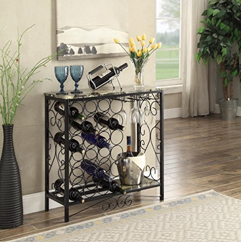 Black and Marble Look Top with 24 Bottles and Glass Holder Wine Organizer Rack Cabinet Kitchen 36"W