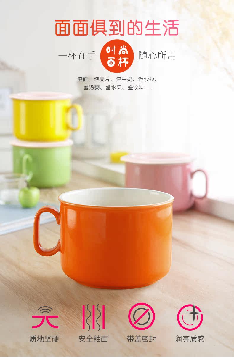 泡面碗带盖陶瓷 韩国宿舍学生家用简约便当盒保鲜碗面杯