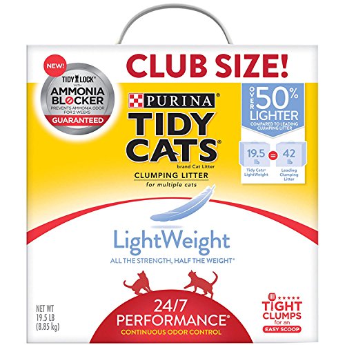 Studio : *Tidy Cats Publisher : *Tidy Cats Binding : Misc. Product Description We know that carrying litter for your multiple-cat household isn't always easy, which is why we formulated Purina Tidy Cats LightWeight 24/7 Performance® clumping litter for multiple cats to weigh 50% less than the leading clumping cat litter. You get around-the-clock odor control at half the weight and your cats get clean-smelling litter boxes they are sure to love. This Tidy Cats litter gives you more of what you need to keep your cats' litter boxes clean and ready for use each day. The continuous protection of this powerfully absorbent formula guards your home from strong urine, ammonia and feces smells. Designed for use in multiple-cat households, this 99.9% dust-free litter delivers long-lasting odor neutralization that helps your cats feel comfortable in every litter box in your home. 0