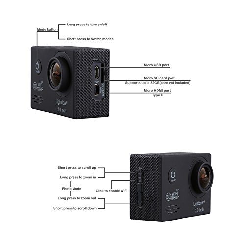 Lightdow LD6000 WiFi 1080P HD Sports Action Camera Bundle with DSP:Novatek NT96655 Chip, 2.0-Inch LTPS LCD, 170° Wide Angle Lens and Bonus Battery (Black+WiFi)