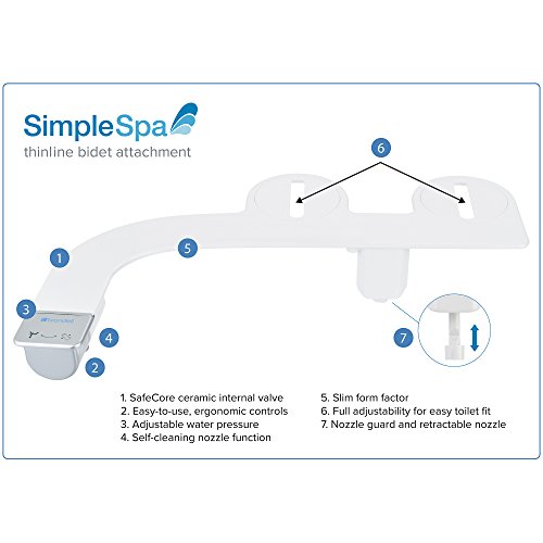 Brondell Bidet - Thinline SimpleSpa SS-150 | Fresh Water Spray | Non-Electric | Bidet Toilet Attachment in White with Self Cleaning Nozzle | SafeCore Internal Valve | Nozzle Guard | Easy to Install