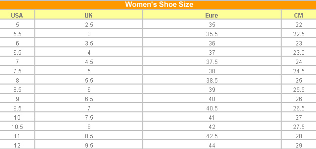 | Euro | 37.5 | 38 | 39 | 40 |