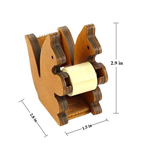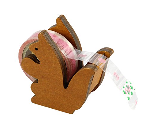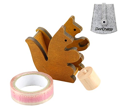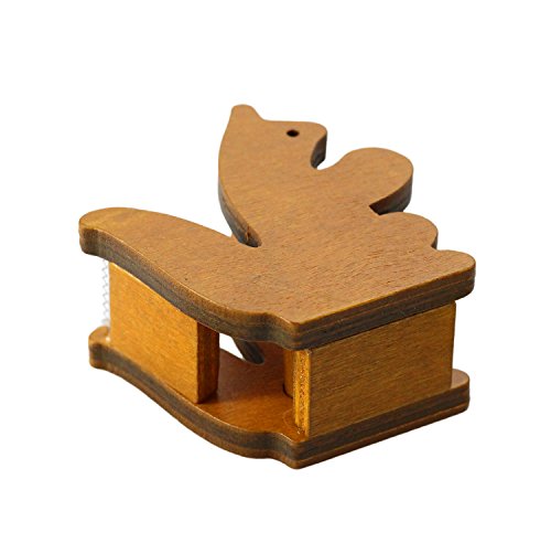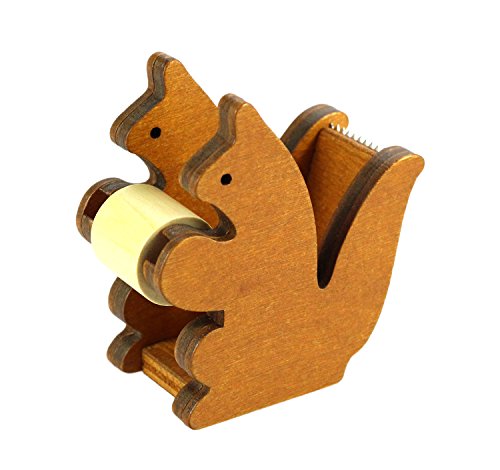 BeeChamp Handmade Cute Wooden Squirrel Desktop Tape Dispenser, Brown