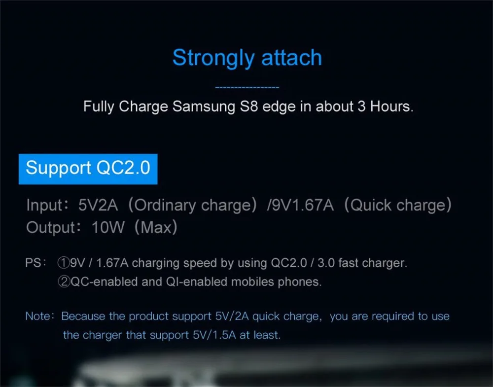 Support Quick Charge Technology:Qualcomm Quick Charge 3.0,Qualcomm Quick Charge 2.0